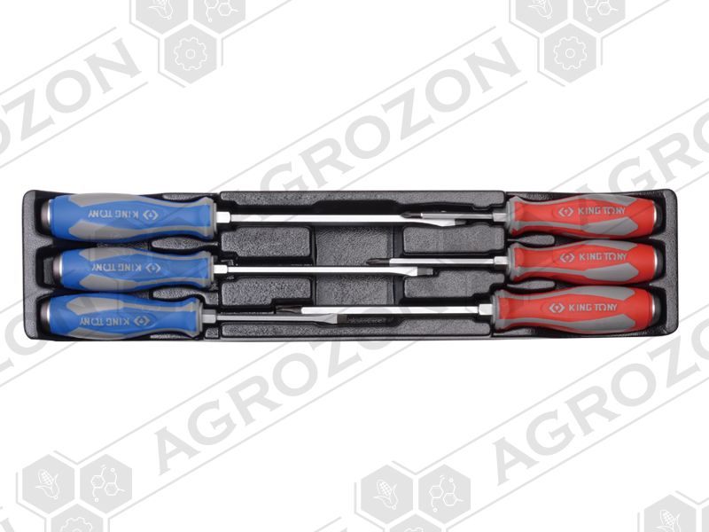 Набір викруток 6 од. посилені в ложементі (5,5x100, 6,5x150, 8,0x175, No 1x75, 2x100, 3x150) KINGTONY 9-30206MR