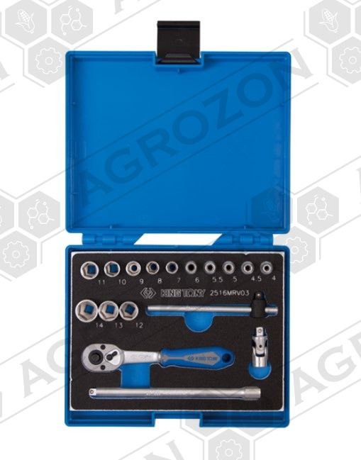- Набор головок 1/4" 17 одиниць з принаддям в пластиковому кейсі