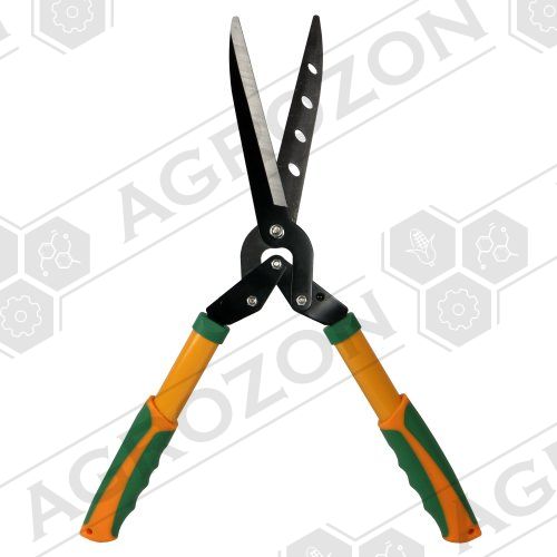 Модель оснащена довгими лезами 210 мм при загальній довжині інструменту 560 мм, що дозволяє виконувати рівний різ молодої зеленої огорожі. Для зручності в роботі садові ножиці оснащені сталевими овальними ручками з ергономічними бікомпонентними ручками-накладками.