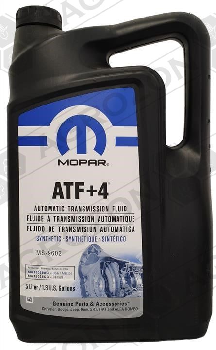 MOPAR ATF+4 є синтетичною трансмісійною оригінальною олією з винятково високою ефективністю, яка відповідає специфікаціям виробників автомобілів Chrysler, Dodge, Jeep, Plymouth, для застосування в автоматичних трансмісіях.