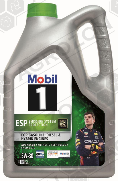 Mobil 1™ ESP Formula 5W-30 – високоефективна моторна олія, розроблена для забезпечення виняткової чистоти деталей двигуна, його захисту від зносу та найвищих експлуатаційних характеристик. Mobil 1 ESP Formula 5W-30 було розроблено експертами компанії для продовження терміну служби та підтримки ефективності систем зниження токсичності вихлопних газів бензинових та дизельних автомобілів. Mobil 1 ESP Formula 5W-30 відповідає вимогам багатьох галузевих стандартів та провідних автовиробників, які пред'являються до сучасних дизельних та бензинових двигунів легкових автомобілів, або перевершує такі вимоги.
