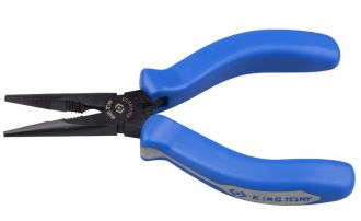 Пасатижі тонкі. ніс 125 мм Пасатижі з витягнутим тонким носом призначені для роботи з негабаритними деталями, а також привабливі слюсарю для відновлення вузлів та механізмів у важкодоступних місцях. Ручний інструмент по функціоналу нагадує пінцет, проте конкурує з аксесуаром за силою стиснення, чим привертає увагу інженерів, будівельників, електриків і техніків. Пасатижі з тонким носом оснащені додатковою виїмкою на робочій поверхні, що дозволяє власнику працювати з різьбовими з'єднаннями та іншими кріпленнями. Також виробником King Tony на межі інструменту передбачена ріжуча кромка для перекушування дроту листового металу. Для зручності використання шарнірний механізм забезпечений поворотною пружиною. Переваги пасатижів у міцності та комфортабельності. Негабаритна 125-міліметрова конструкція покращує зусилля стиснення за рахунок прогумованих рукояток. Інструментальна легована сталь гарантує майбутньому власнику міцність та довговічність пасатижів. Ріжучі кромки ручного інструменту пройшли індукційне загартування і обіцяють користувачеві залишатися гострими протягом тривалого часу. Підробка пасатижів виключена, адже на металевому корпусі виробу є захисна мітка.