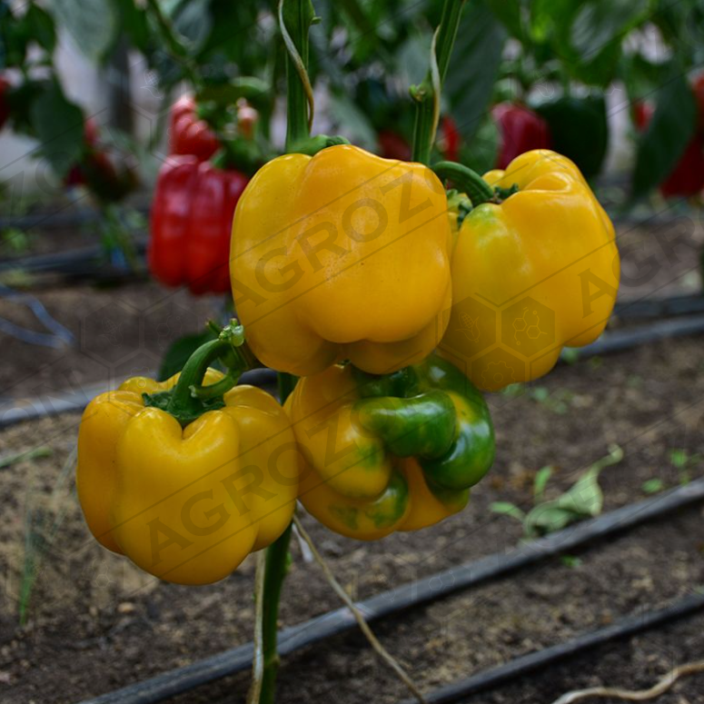 Плід: кубовидної форми, вага 300-350 г, товщина стінки - 8-9 мм, яскраво-жовтого кольору, солодкі