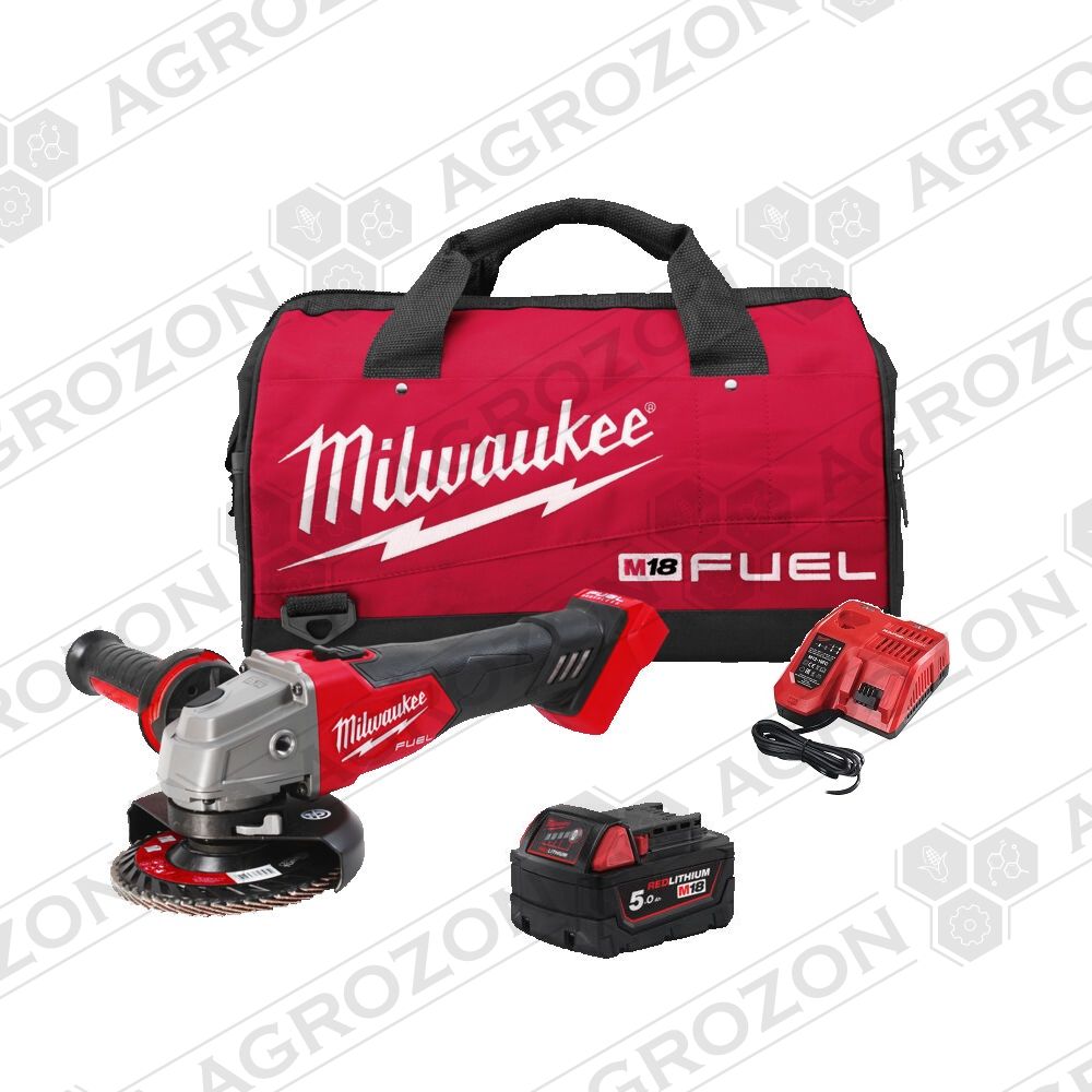 Шліфувальна машина кутова акумуляторна MILWAUKEE, M18 FSAG125X-501BRF, діаметр 125мм, 1200Вт, (+зарядний пристрій M12-18 FC, аку
