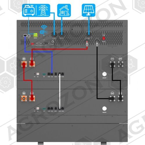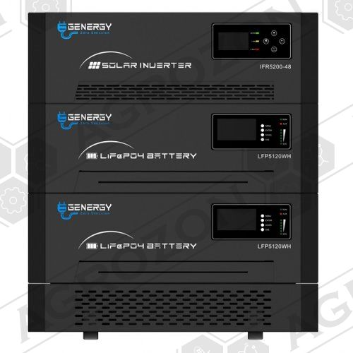 Акумулятор для накопичення енергії GENERGY LFP-5120W 5120 Вт (у комплекті 2 одиниці) - є частиною системи накопичення електроенергії (може бути частиною побутової сонячної електростанції). Являє собою стекируовану батарею, яка повинна підключатися до спеціального інвертора GENERGY - для накопичення і віддачі електроенергії.