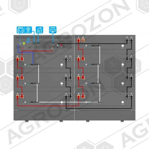 - Є частиною модульної конструкції з можливістю масштабування. Мінімальна кількість таких батарей-модулів у системі накопичення енергії - від 2 шт. Таким чином, користувач може розраховувати на ємність акумуляторної системи від 10,24 кВт до 25,6 кВт.