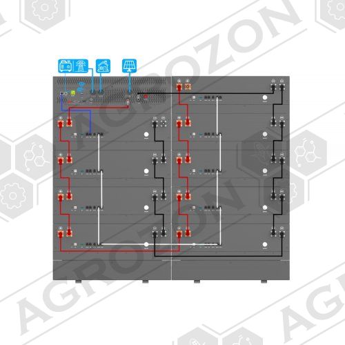 Акумулятор для накопичення енергії GENERGY LFP-5120W 5120 Вт (у комплекті 9 одиниць) - є частиною системи накопичення електроенергії (може бути частиною побутової сонячної електростанції). Являє собою стекируовану батарею, яка повинна підключатися до спеціального інвертора GENERGY - для накопичення і віддачі електроенергії.