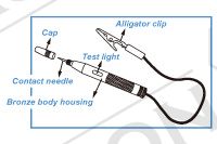 Тестер електроланцюгів 6-24V. Бронзовий корпус Кришка для контактної голки Лампа 24V/3W змінна Випробувальна напруга 6 ~ 24 В Тільки для застосування ланцюгів постійного струму