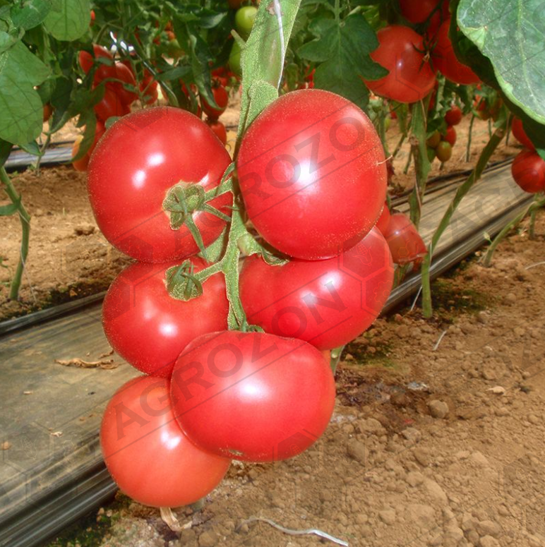 Плід: томати середньої щільності, округло-плоскої форми, насиченого рожевого кольору, без зеленої плями, багатокамерні (6-8 камер), вага - 190-220 г, стійкі до розтріскування і транспортабельні