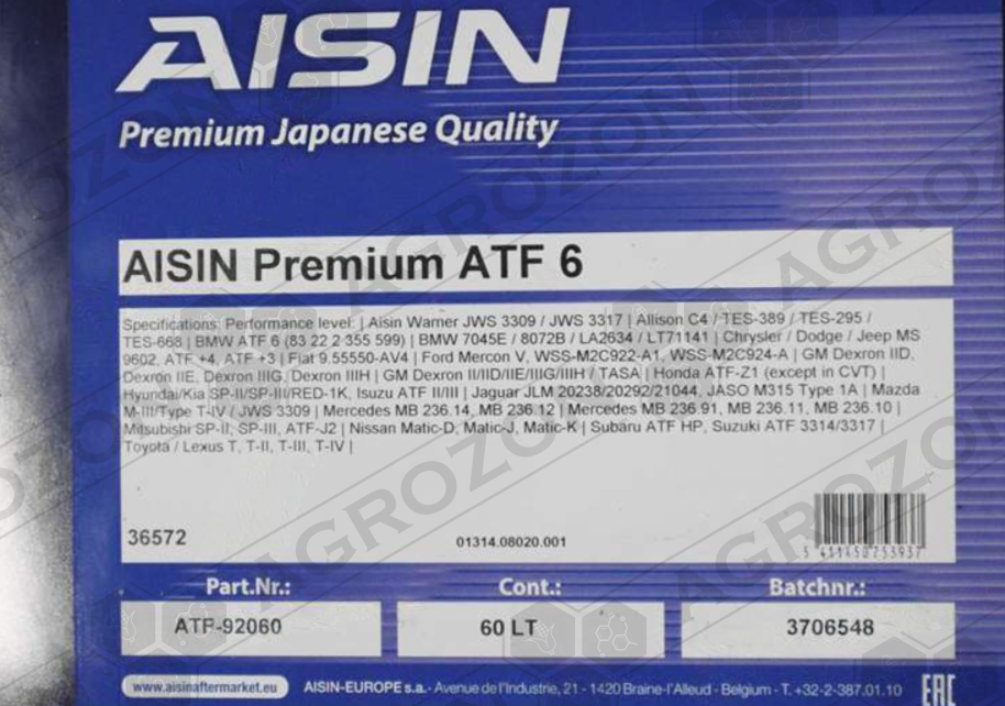 - Трансмісійна олива AISIN ATF6 + FE DEXRON-VI - 60 л