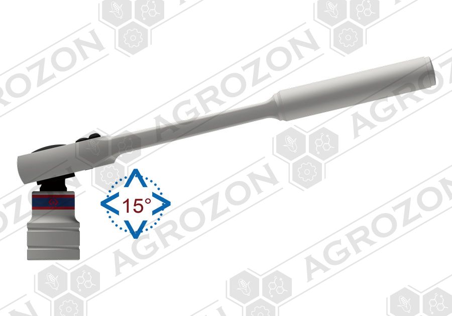Головна перевага цього інструменту – наявність шарніра в тріскачному механізмі. Завдяки чому посадковий квадрат може відхилятися від площини рукоятки на 15 градусів у будь-яких напрямках. Це зручно для роботи в стисненому просторі або важкодоступних місцях, де підійти до елемента кріплення можна під невеликим кутом.