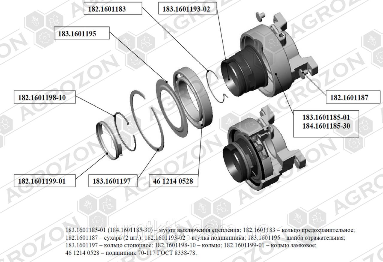 - Выжимной ЯМЗ 172.21.032 Муфта Т-150 выключения сцепления ЯМЗ в сборе с подшипником (пр-во Украина, УМТК)