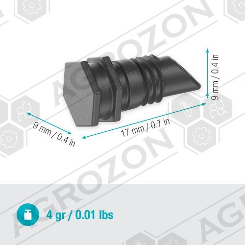 Заглушка Gardena Micro-Drip-System для шлангів 4,6 мм 3/16" 10 шт. — призначена для встановлення на кінець трубок мікрокрапельного поливу діаметром 4,6 мм. Також може перекривати воду в раніше виконаних отворах на лінії крапельного поливу. Може використовуватися багаторазово. Поставляється в комплекті - 10 шт. Виготовлено в Європі.