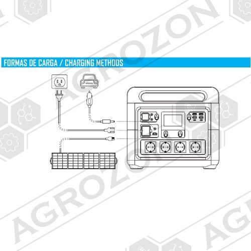 - Функція одночасного завантаження та розвантаження, що дозволяє заряджати зарядну станцію від сонячних панелей та одночасно віддавати енергію з вихідною потужністю 230 В.
