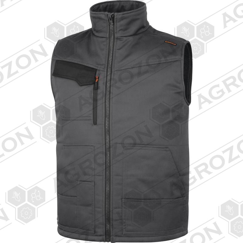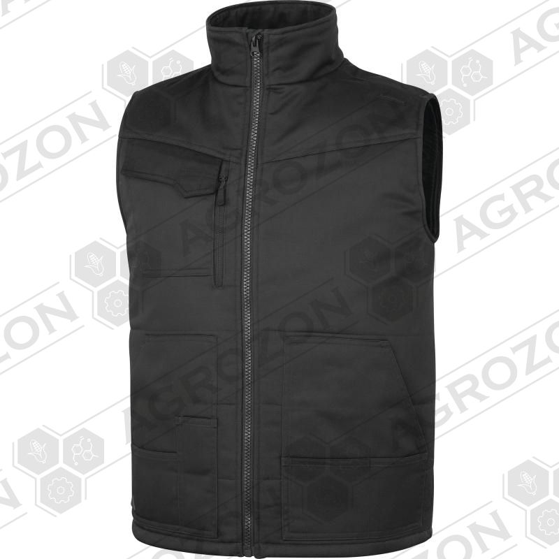Робочий жилет утеплений з великою кількістю кишень. Матеріал верху: 65% поліестр + 35% бавовна, щільність 245 г/м². Цей жилет було розроблено для найкращого поєднання зі спецодягом Mach2 виробництва Дельта Плюс. Вітрозахисні пройми. 9 кишень. Декоративний світлоповертаючий елемент на спині.