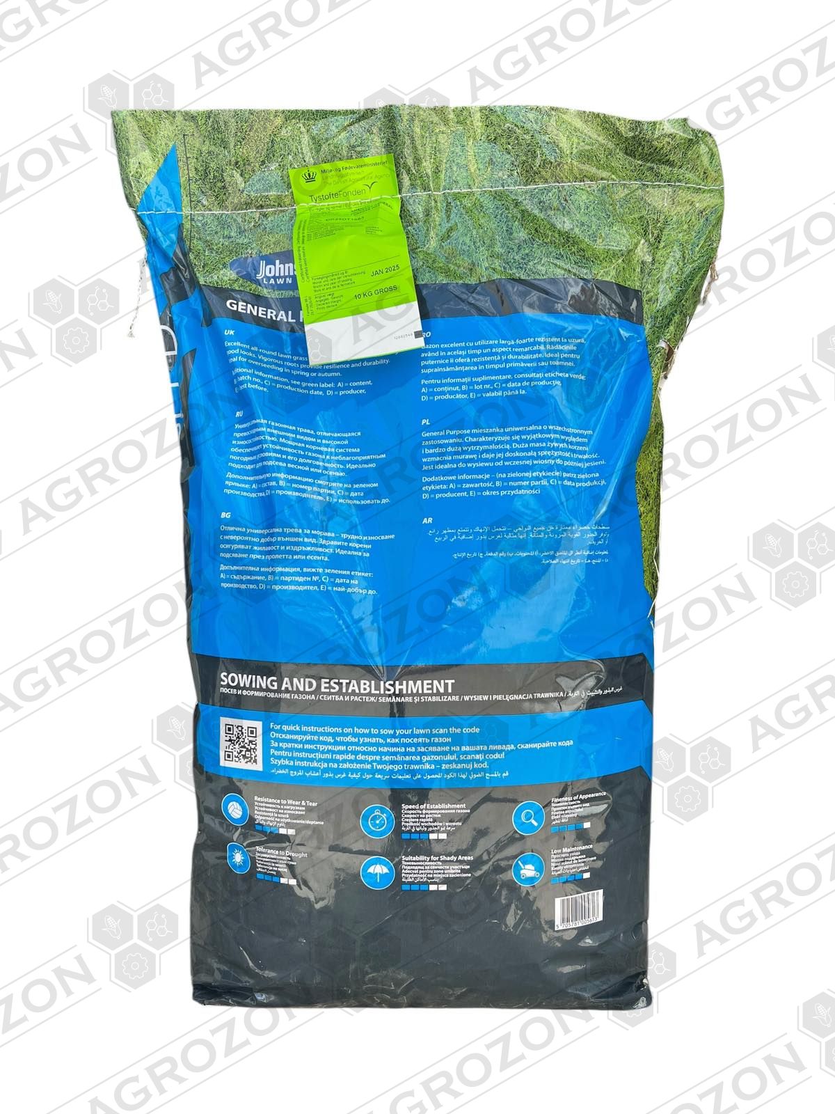 Газонная трава универсального назначения, благодаря использованию современных видов многолетнего райграса и овсяницы красной, газон имеет привлекательный внешний вид и в то же время очень износостойкий. Энергичные корни создают крепкий дерн и делают газон высоко устойчивым и долговечным. Мягкий на ощупь и не требует особого ухода, частой стрижки и регулярного полива. Для того, чтобы создать и поддерживать газон высокого качества, используют соответствующие удобрения перед посевом. Идеальная смесь для подсева весной или осенью.