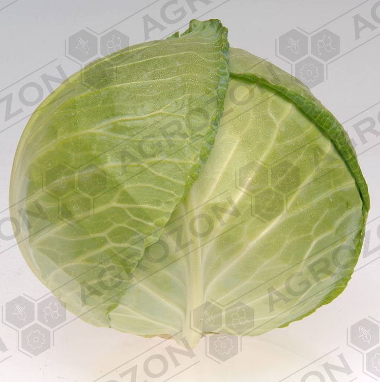 Плод: вес головки - 2-4 кг, округлый, окрас снаружи - светло-зеленый, внутри - белого цвета, твердый, с маленькой кочерыгой