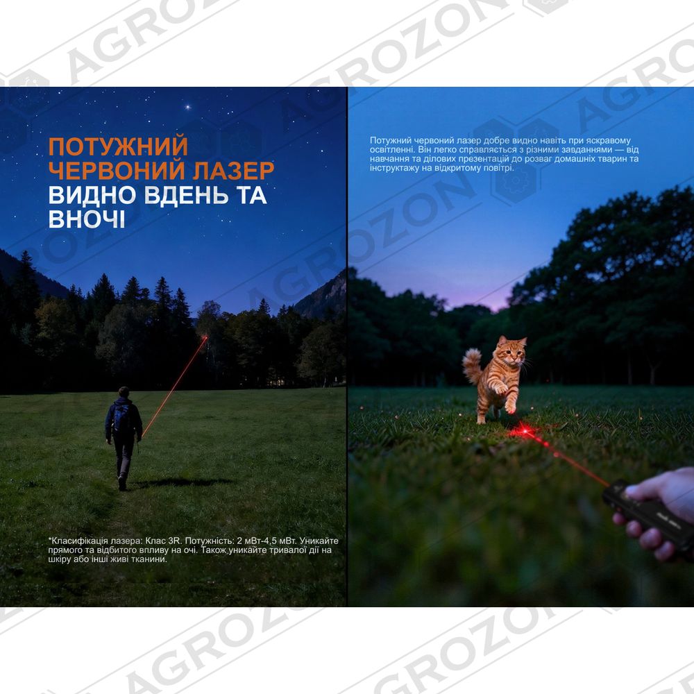 - Червоний лазер 650 нМ, який можна використовувати як світлову вказівку на великій відстані.