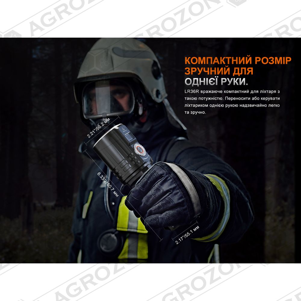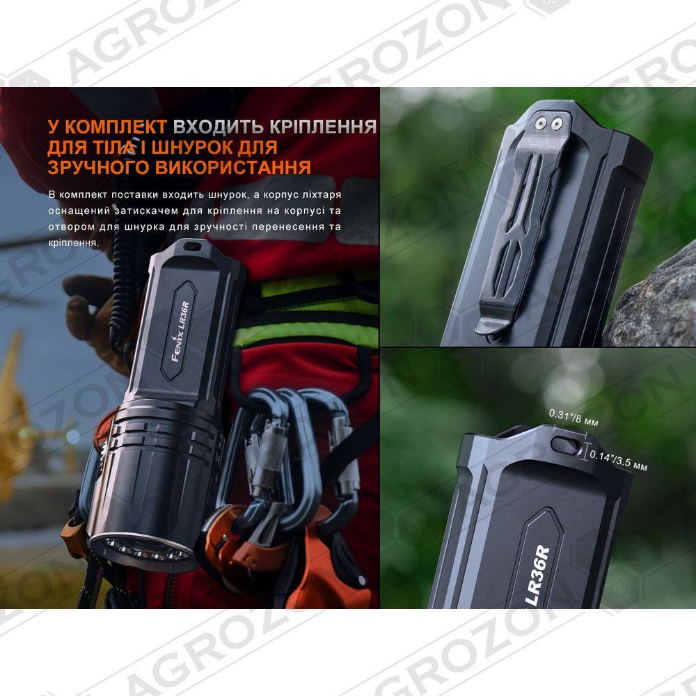 Ліхтар Fenix LR36R — це спеціалізована модель для експлуатації в екстремальних умовах, зокрема для пошуково-рятувальних робіт, де яскраве та стабільне світло є необхідністю для успішного виконання завдань.