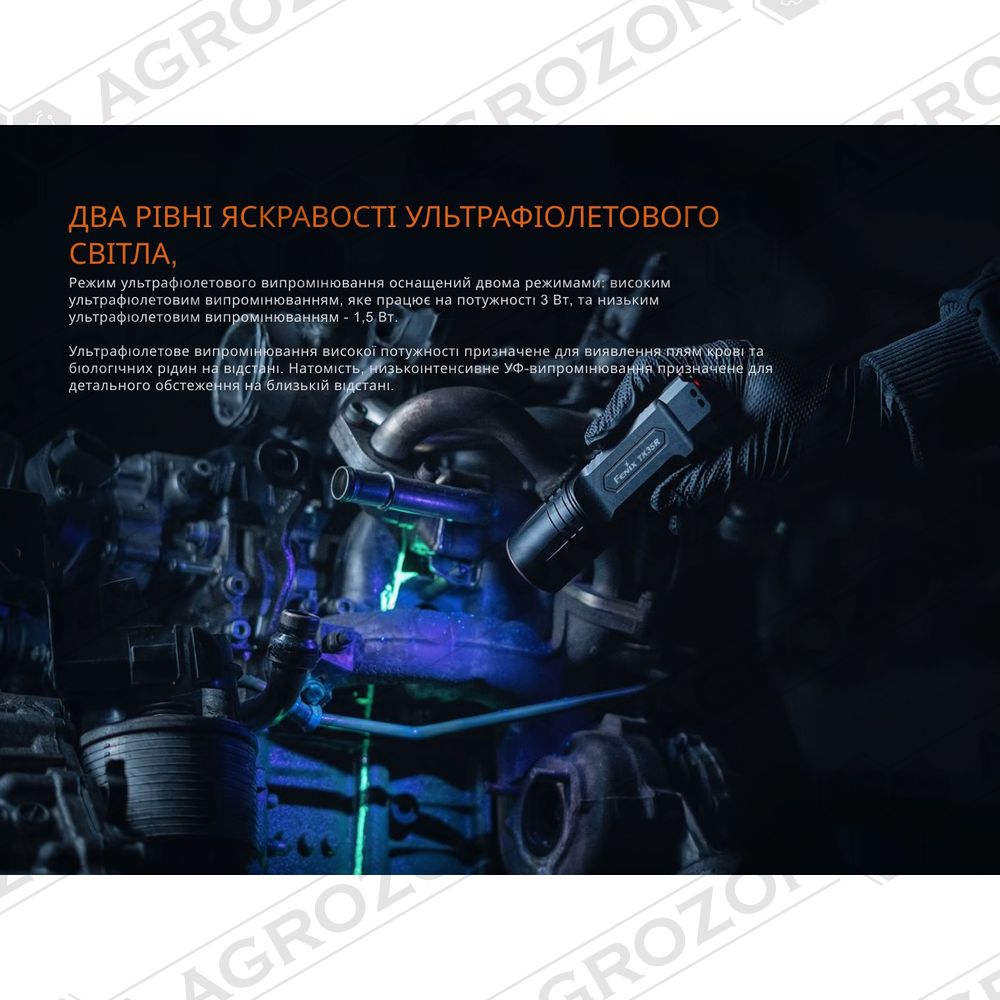 - тактичний ліхтар Fenix TK35R з білим та УФ світлом;