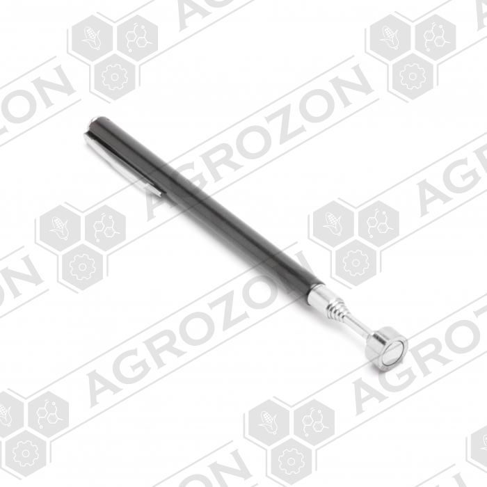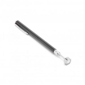 Магніт телескопічний – слюсарний ручний інструмент для підхоплення дрібних металевих деталей та елементів різьбових з'єднань. Пристрій виконаний у формі кулькової ручки (зручна кліпса для кріплення інструменту на одяг). Телескопічна конструкція встановлює потрібну довжину інструменту. На кінці пристрою потужний магніт. Використовується інструмент в автосервісі для пошуку та підняття елементів кріплення, що впали на підлогу або в картер вузла машини. Зручний магніт для вилучення деталей, гайок, болтів, гвинтів із очисних розчинів із агресивним середовищем. Виробник: King Tony Країна виробник: Тайвань Конструкція: телескопічна, намагнічена Сила магніту: 3,5 LBS (1,6 кг) Матеріал: легована сталь (хром, ванадій) Оздоблення: хромування, рукоять пофарбована захисним шаром Розмір: довжина 130-640 мм Вага: 45,6 грам В одному впакуванні телескопічних магнітів 50 шт, у ящику 200 штук.