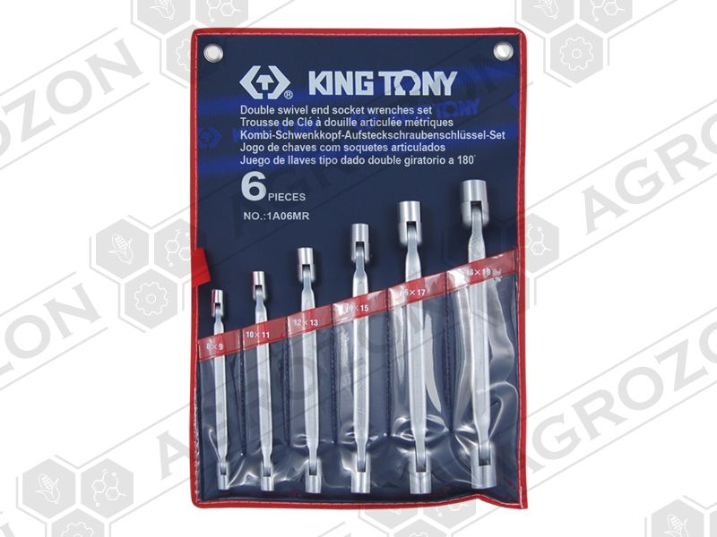 Набір ключів торцевих з карданом 6од (8 x 9 , 10 x 11 , 12 x 13 , 14 x 15 , 16 x 17 , 18 x 19) KINGTONY 1A06MR