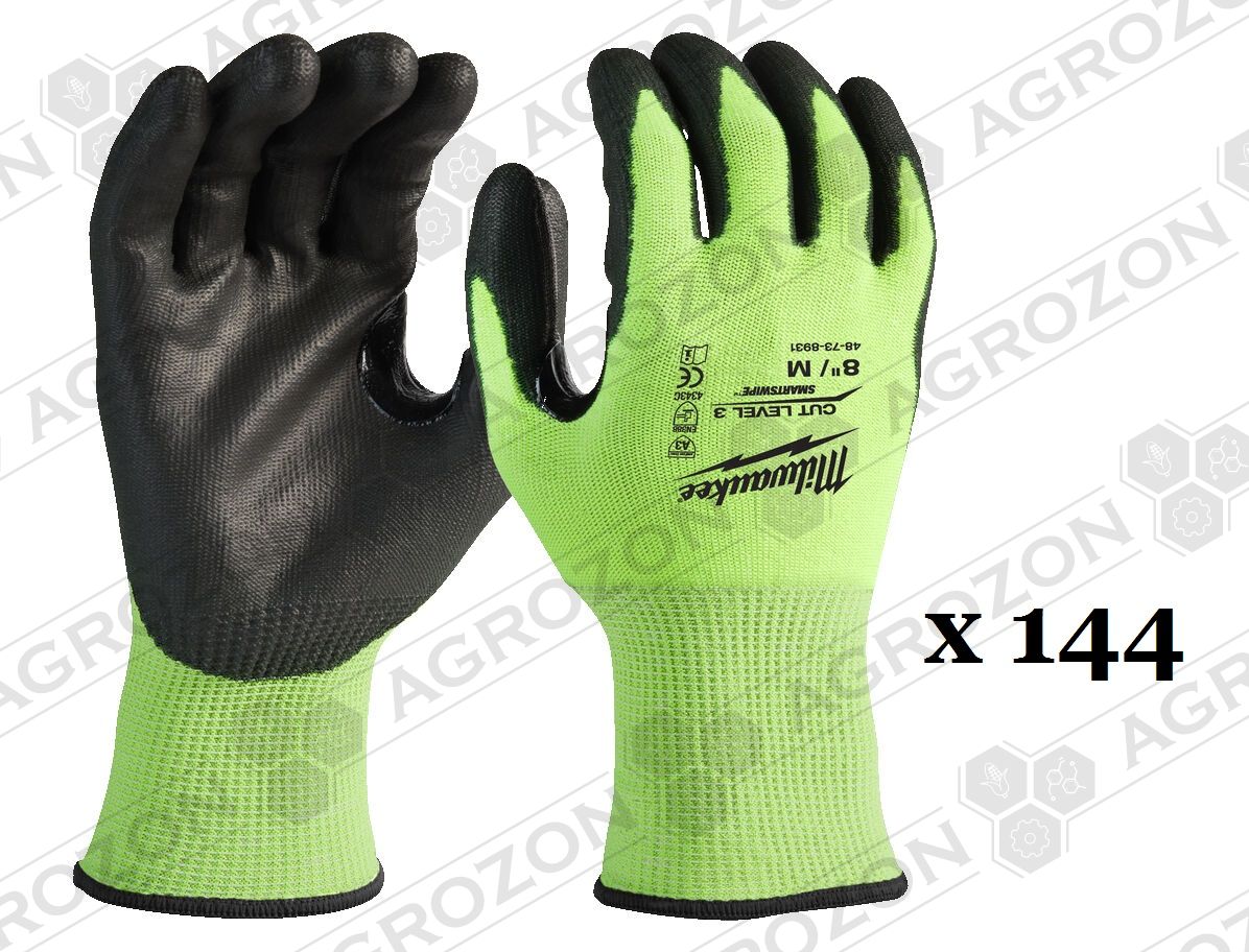 Рукавиці робочі сигнальні Hi-Vis MILWAUKEE, з опором порізам 3/C рівня, розмір 8/M, (144 пари) - Купить в Украине